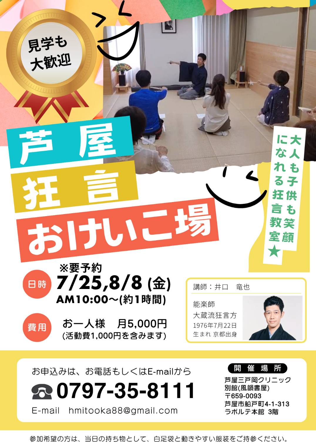 次回は7月25日金曜10時~。狂言で養生。皆様お待ちしております